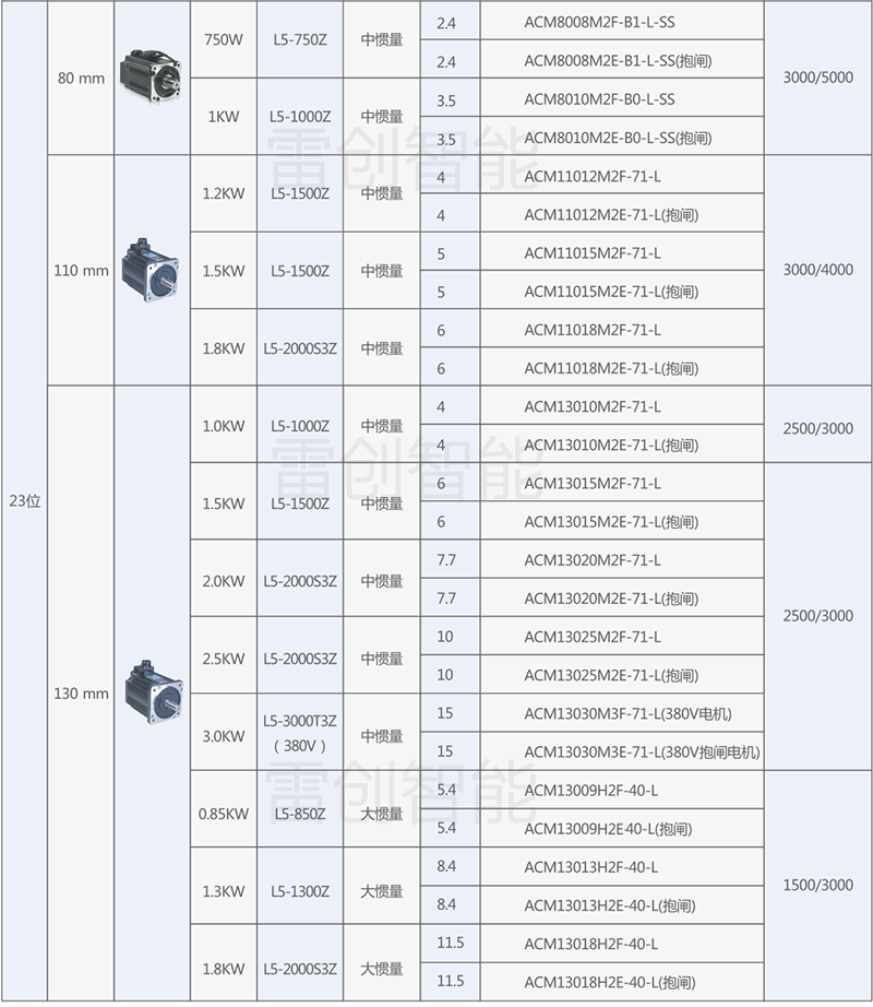 下面针对各系列产品,提供通用的产品选型和配套信息以供参考;特殊应用的优化选型请咨询雷创智能或雷赛智能工程师。